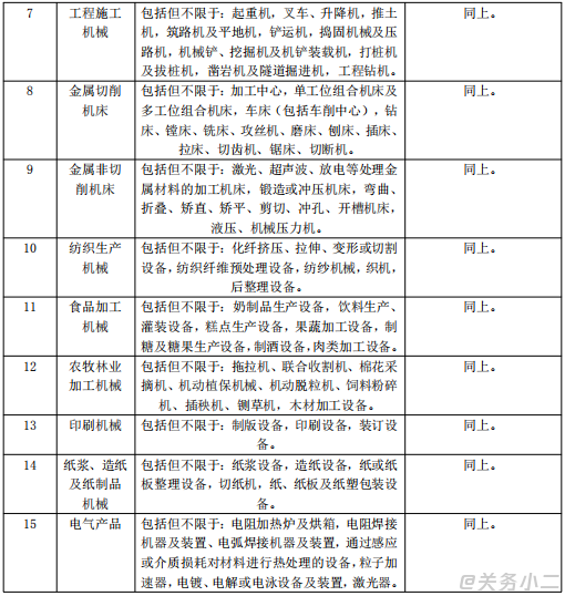 2、管理措施表2的旧机电产品